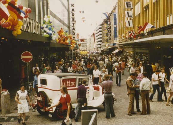 Bild: Verteilung des Kieler Woche Sonderhefts, 1973 in der HolstenstraĂe.