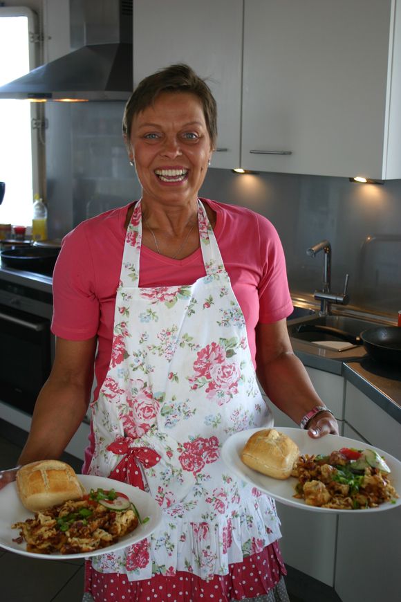 Bild: Deftig: Jutta Steffen serviert Rührei auf Speck.