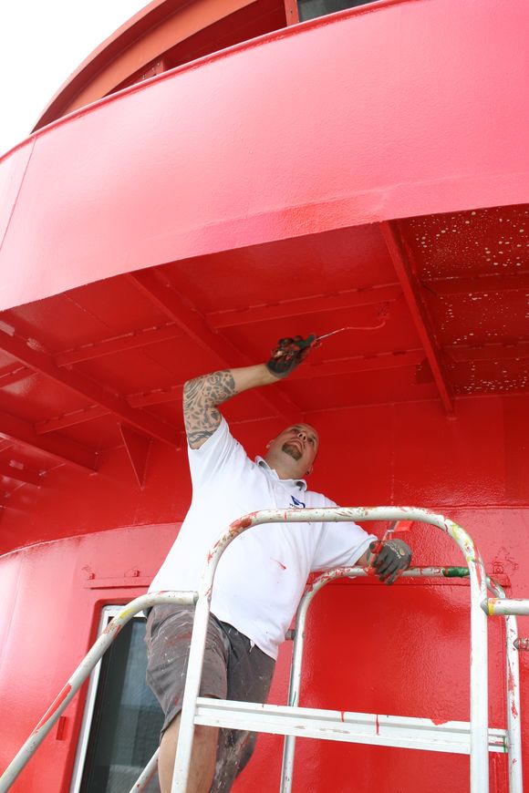 Es ist wenig Verkehr am Vormittag des längsten Tages des Jahres rund um die Lotseninsel. Russland-Boykott und sinkende Schweröl-Preise machten sich am Kanal bemerkbar, munkelt man in der Messe. Zwei Schornsteinfeger genießen gerade das „beste Rührei der Welt“, wie der Meister betont. Küchenkraft Jutta Steffen, so alt wie der Turm, freut sich übers Kompliment: „Ich bin hier eine von drei Luxus-Stewardessen“. Pünktlich zum Jubiläum glänzen im Speiseraum nicht nur Boden und Wände wie neu, auch die Trinkwasserversorgung soll sich in diesem Jahr mit einer Entsalzungsanlage vom Land unabhängig machen.
