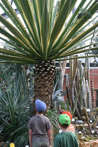 Bild: Fast wie im Märchen: Spitzblättrige Palmen und stachelige Kakteen überragen die kleinen Besucher im Wüstenhaus.