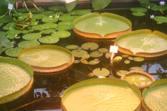 Bild: Gleich stabilen Booten schwimmen die Blätter der weltgrößten Seerose Victoria.